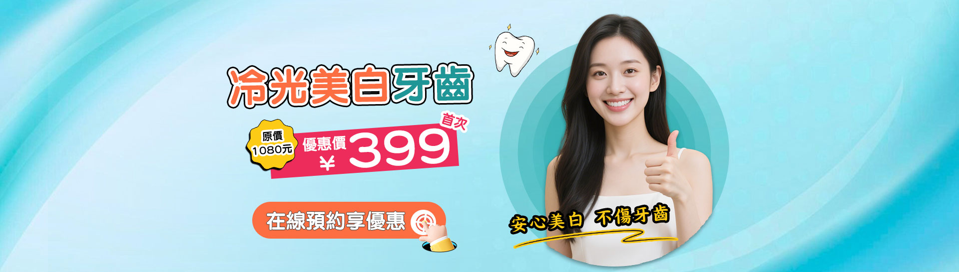 採用高科技冷光技術,結合美白劑,對不同牙齒特質進行納米冷光護齒美白。將牙齒內部的大分子染色劑(深色)分解為小分子(淺色或無色),從而實現美白效果。